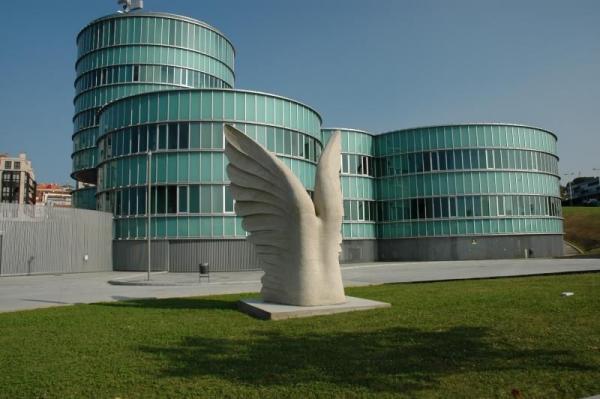 La escultura representa unas alas. Mide más de cuatro metros de altura y pesa más de cuarenta toneladas.