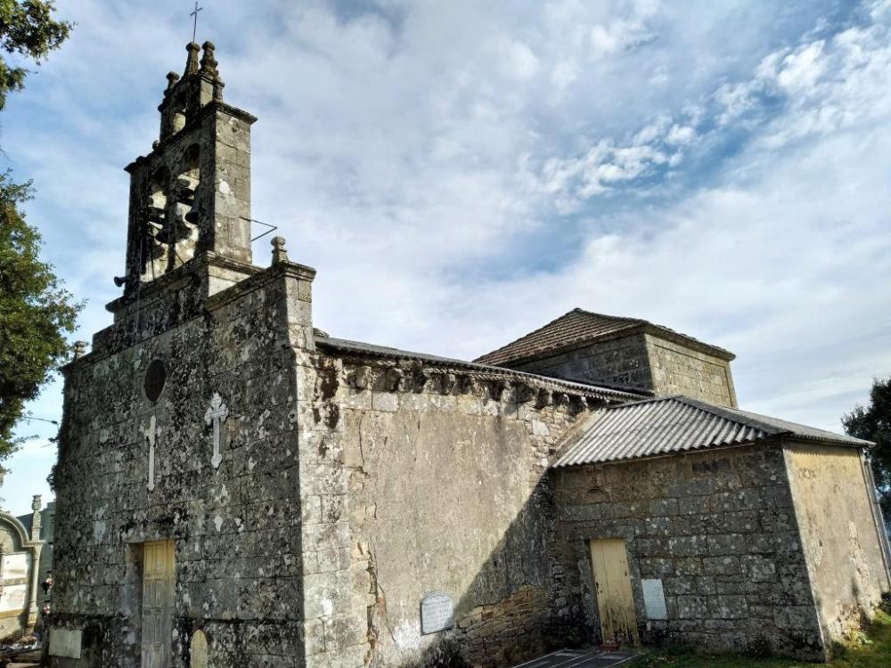 Antes de entrar en la iglesia podemos admirar el centenario roble, inscrito en el “Catálogo de árbores senlleiras de Galicia” (Catálogo de árboles singulares de Galicia).