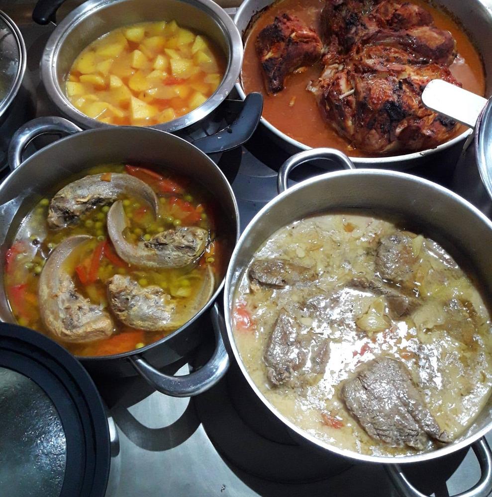 El menú diario incluye: carne asada, lengua, arroz, macarrones, guiso, pollo y bacalao